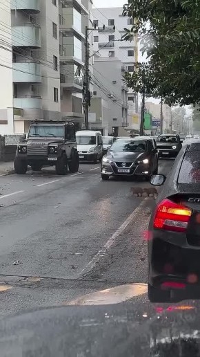В Бразилии движение остановилось по самой уважительной причине — дорогу переходило семейство капибар