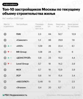 ГК «А101» поднялась на третье место, вытеснив MR Group на четвёртую позицию, а ГК «ПИК», «Самолет» и «А101» лидируют по объемам строящегося жилья в Москве:ГК «ПИК» — 64 дома (52,7 тыс. квартир), 2,3 млн кв. м, доля — 12,9% ГК «Самолет» —...