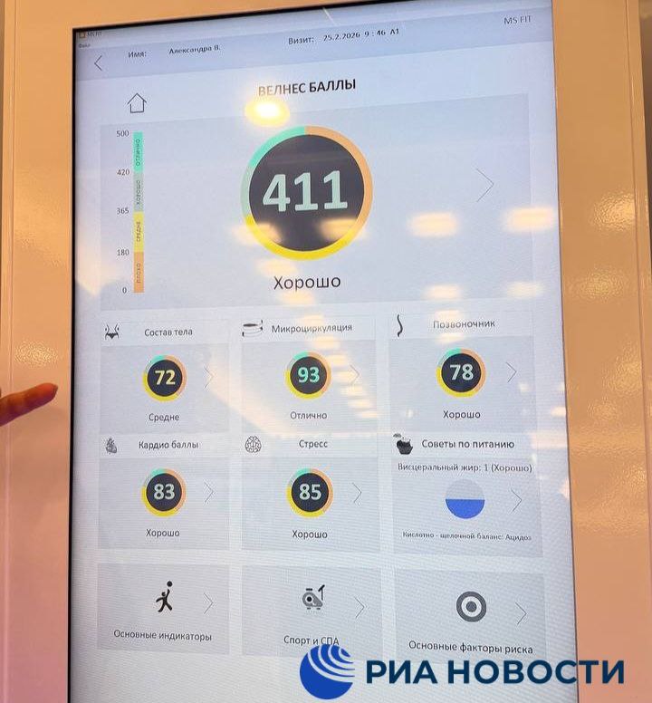 Его представили на Форуме будущих технологий в Москве. Устройство измеряет и анализирует пульс, давление, насыщение крови кислородом, массу и рост. Система дает представление о состоянии здоровья пациента и показывает биологический возраст.