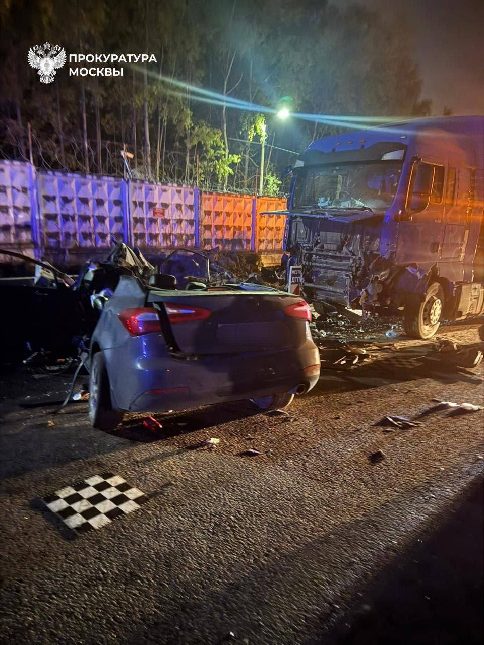 В ночном ДТП на Афанасовском шоссе в Москве погибли три человека: 32-летняя женщина за рулем легковушки выехала на встречку и столкнулась с грузовиком