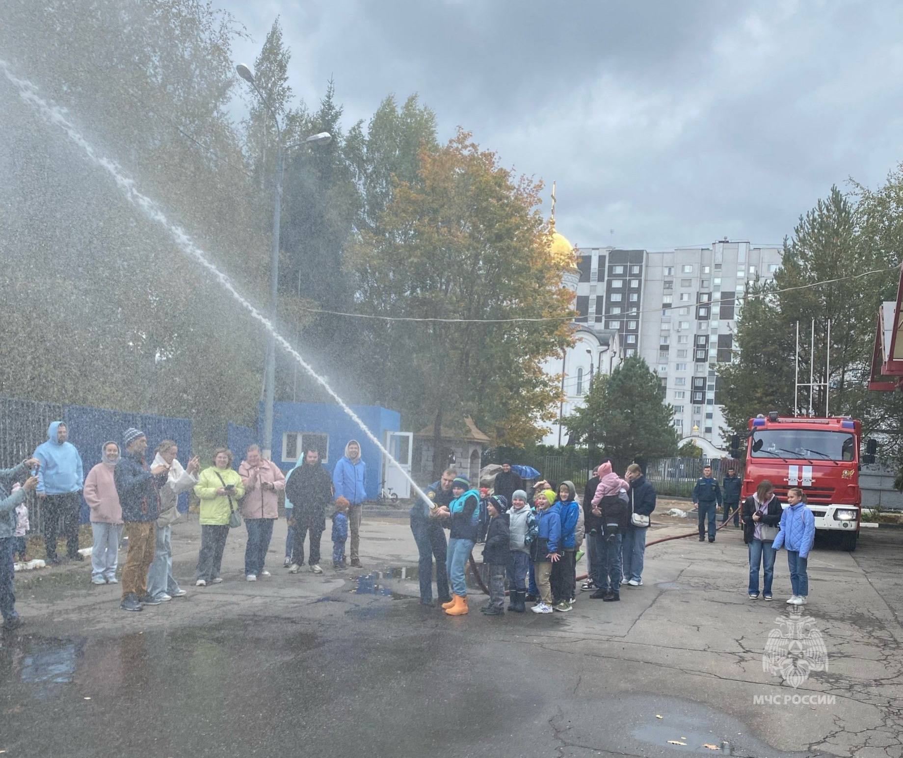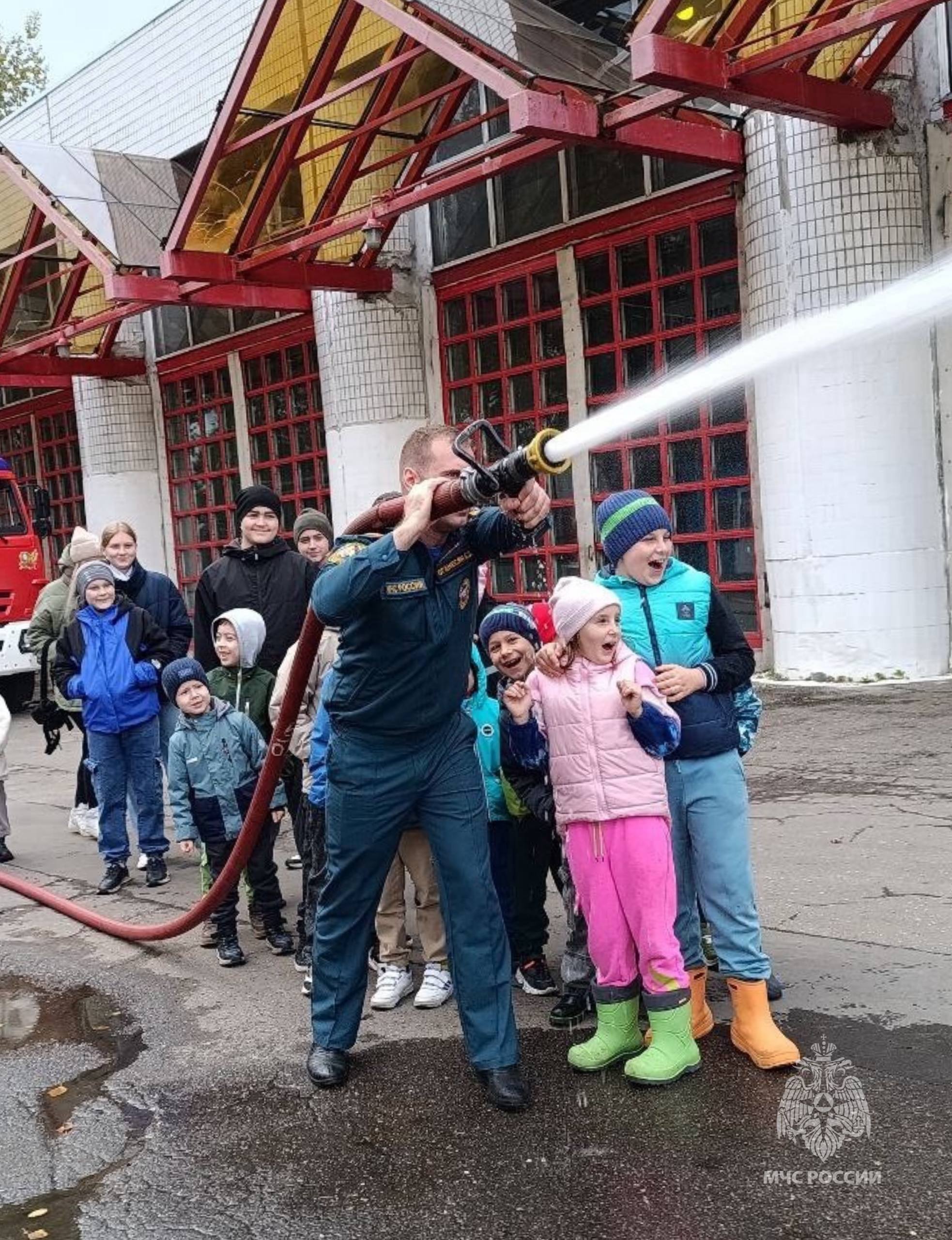 Также под контролем специалистов МЧС России дети попробовали подать воду из пожарного рукава.