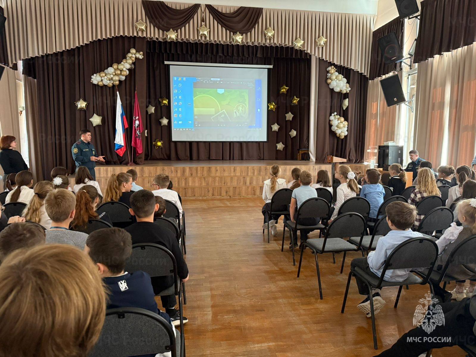 Мастер спорта СССР Олег Кузнецов, начальник 22 ПСЧ Управления по ВАО ГУ МЧС России по г. Москве, мастер спорта России Александр Санин провели в школе № 1352 открытый урок для учащихся начальных классов, посвященный истории и развитию пожарно-спасательного спорта.