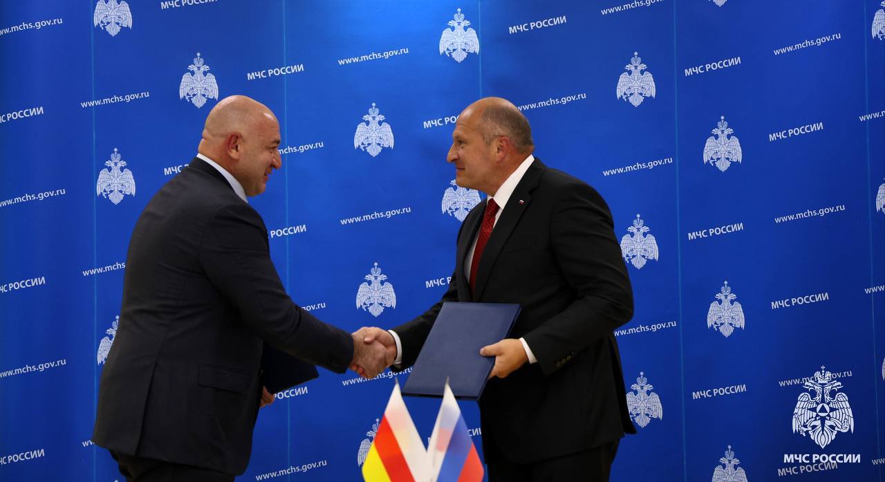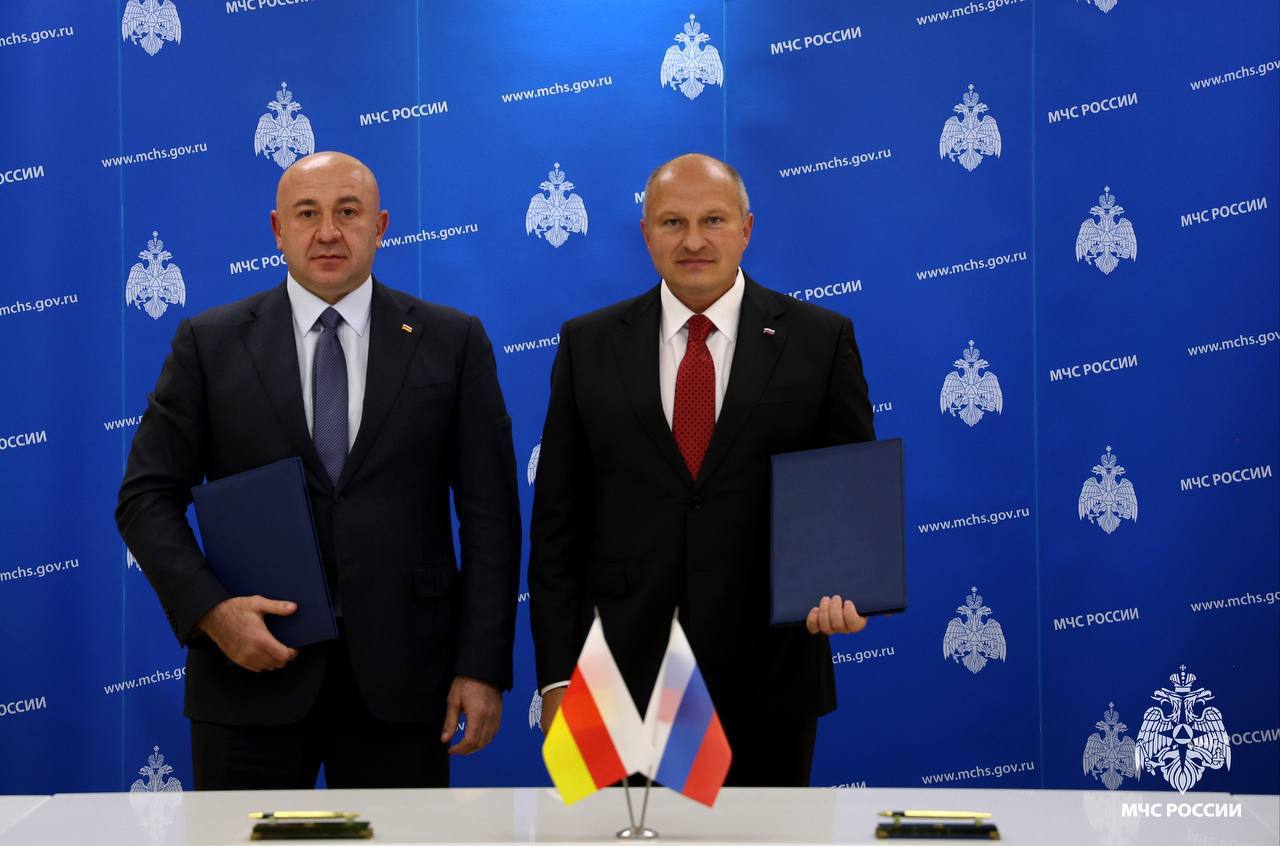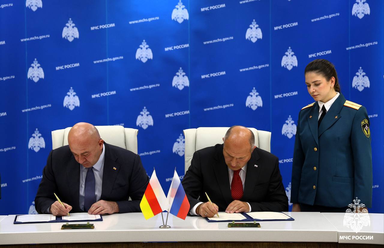 В Москве главы МЧС России Александр Куренков и МЧС Республики Южная Осетия Ибрагим Гассеев подписали Протокол к Соглашению о порядке и условиях софинансирования за счет средств Российской Федерации денежного довольствия сотрудников МЧС Республики Южная Осетия.