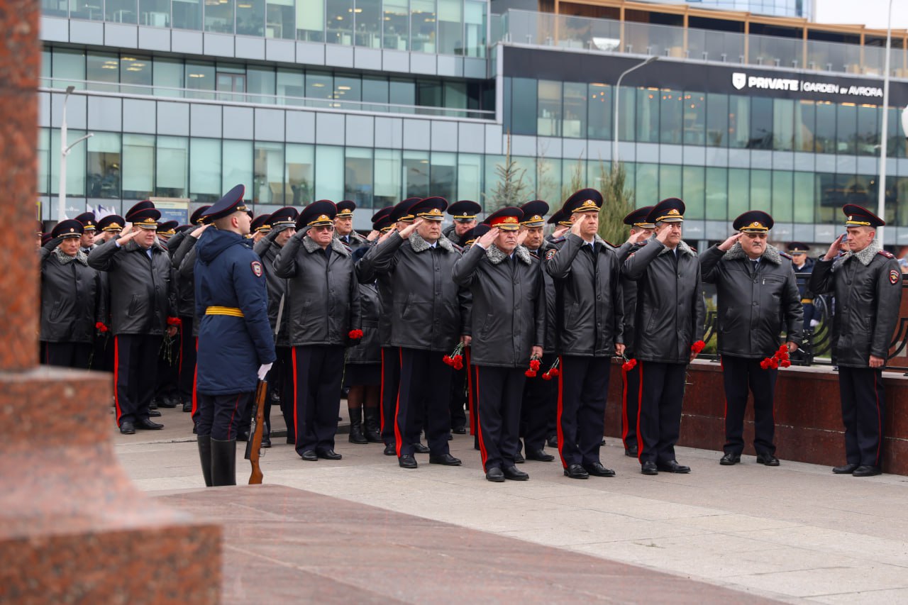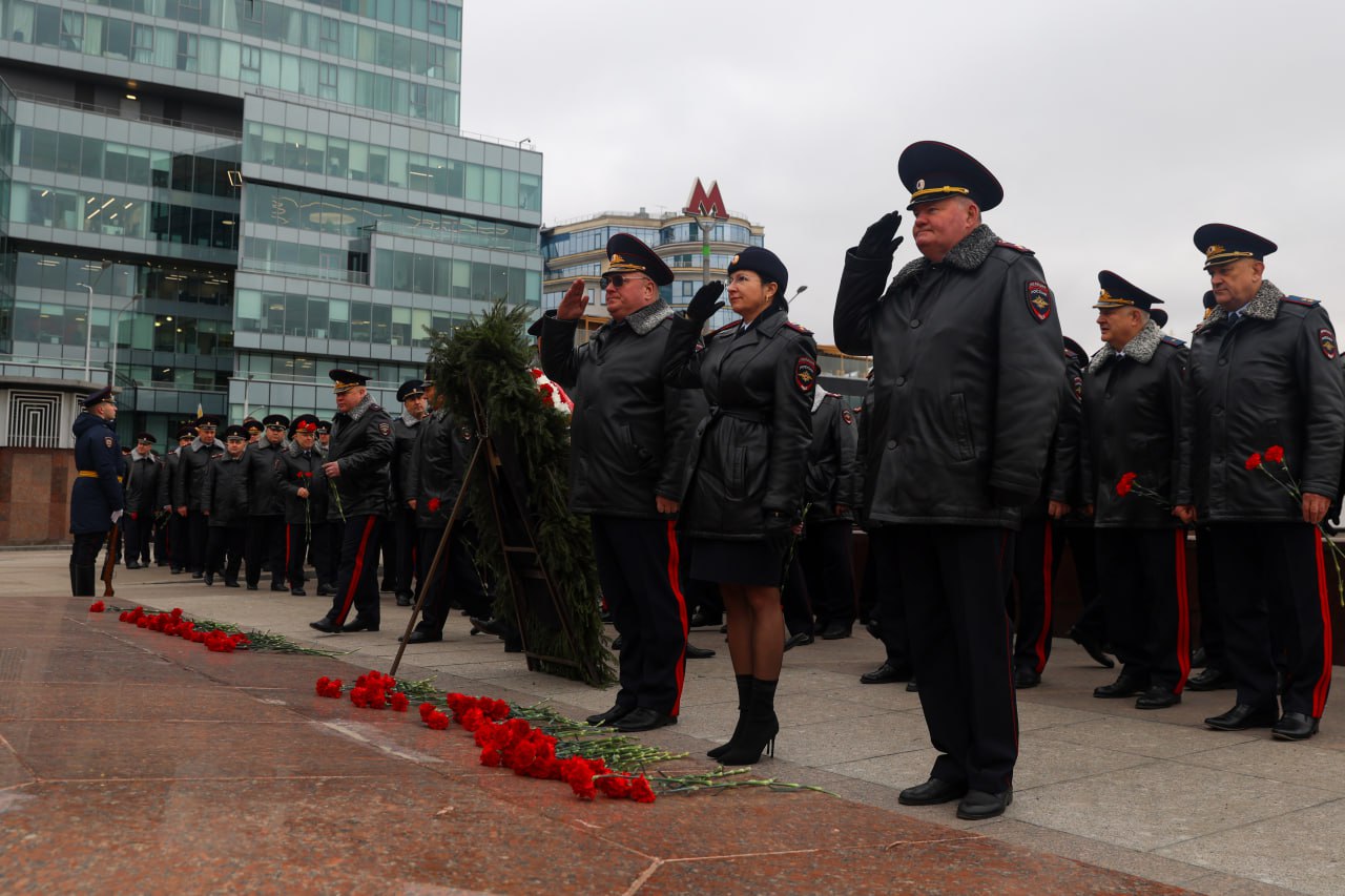 В Москве у памятника «Благодарная Россия – солдатам правопорядка, погибшим при исполнении служебного долга» делегация МВД России почтила память своих коллег