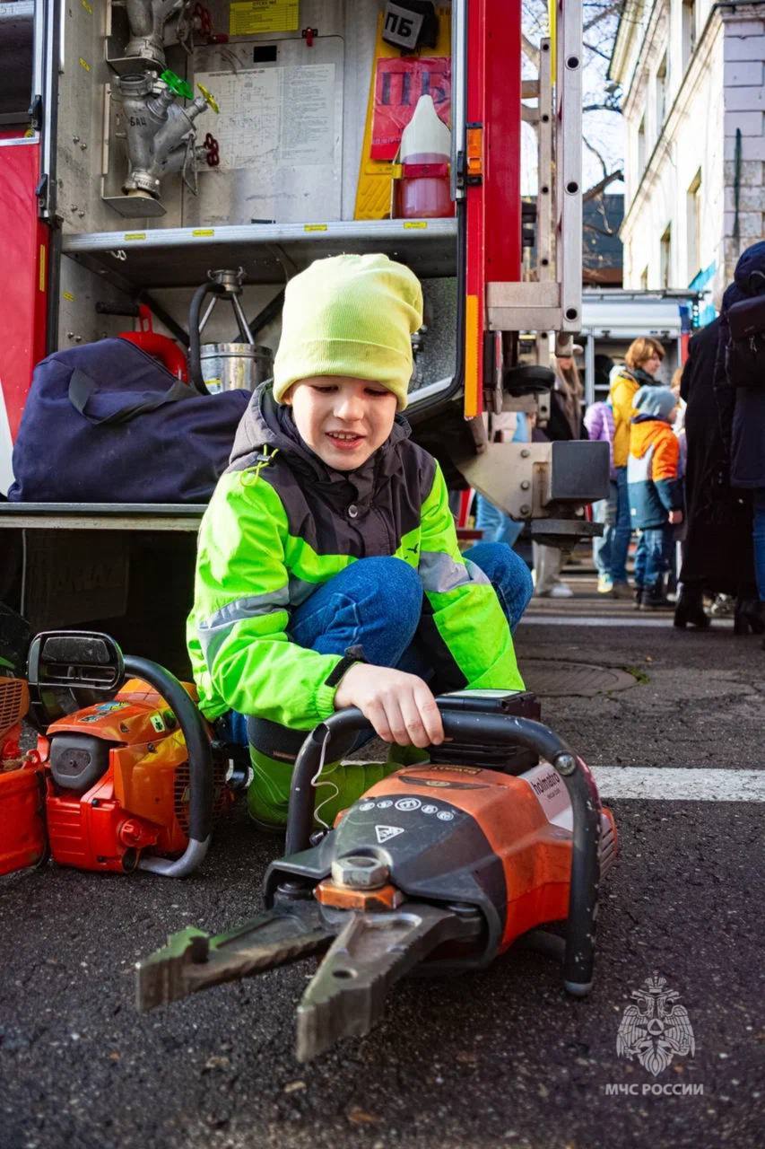 Ребята с интересом осмотрели пожарные автомобили и оборудование, задавали вопросы о принципах работы гидравлического инструмента и особенностях использования дыхательных аппаратов.
