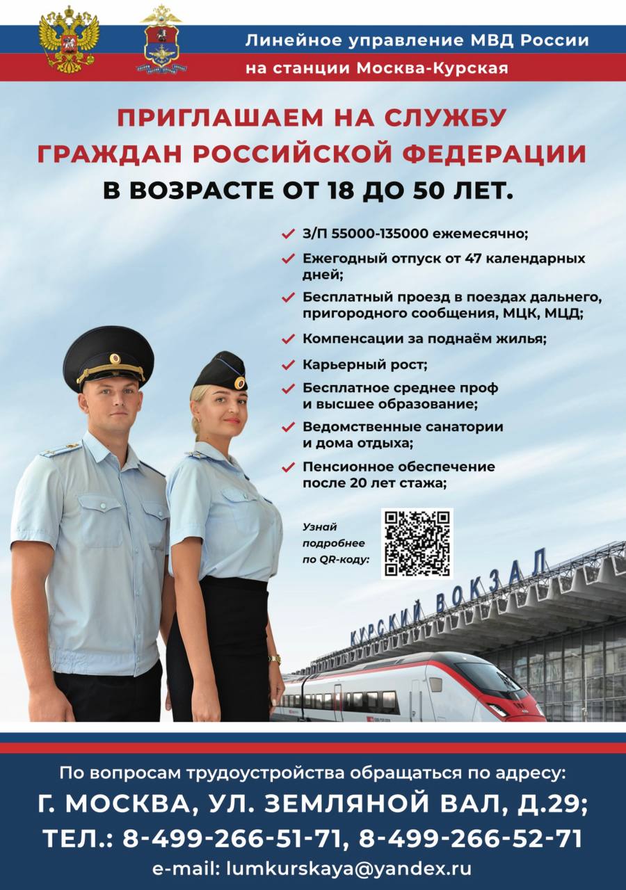 Линейное управление МВД России на станции Москва-Курская приглашает на службу!