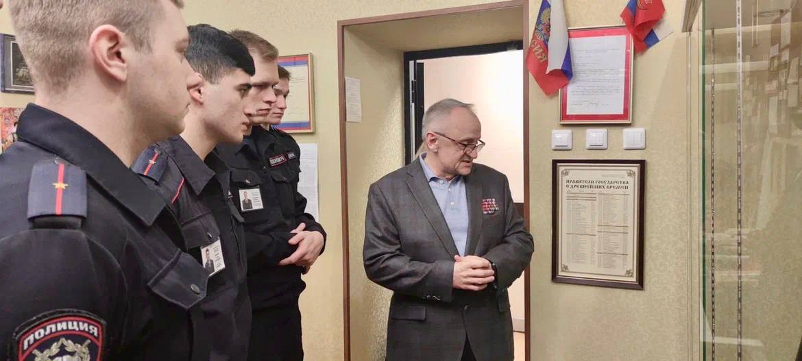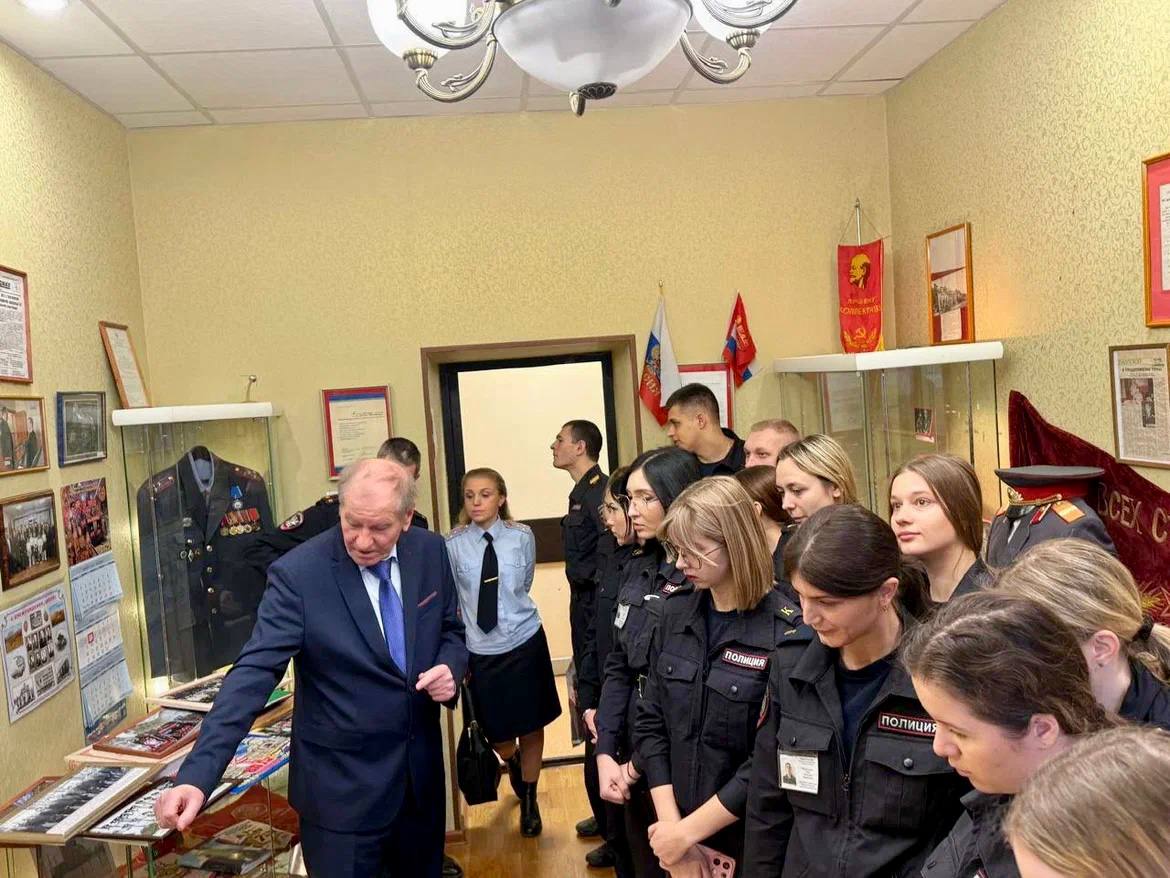 Представитель Общественного совета и председатель Совета ветеранов линейного отдела, полковник милиции в отставке Владимир Гавриков, поделился со слушателями историями о раскрытых преступлениях.