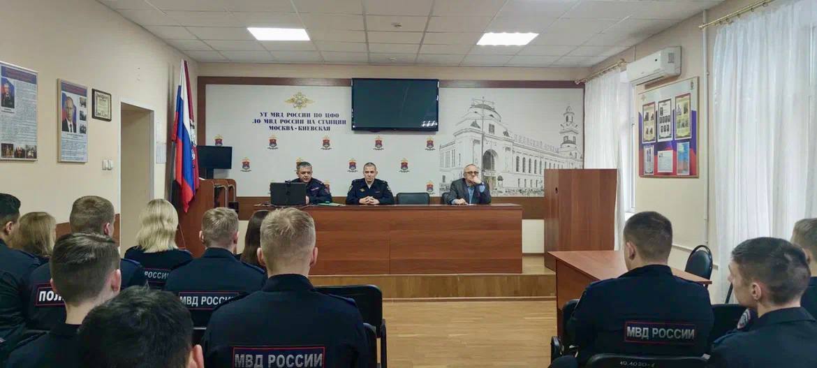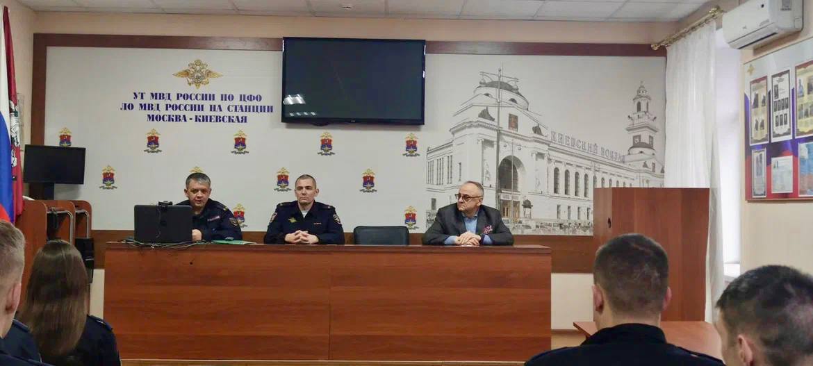 На станции Москва-Киевская представители транспортной полиции, ветеранской организации и Общественного совета провели двухдневное агитационное мероприятие для курсантов и слушателей Московского ордена Почета университета МВД России имени В.Я. Кикотя. Встреча была направлена на углубление знаний новоиспеченных офицеров о службе на объектах транспорта.