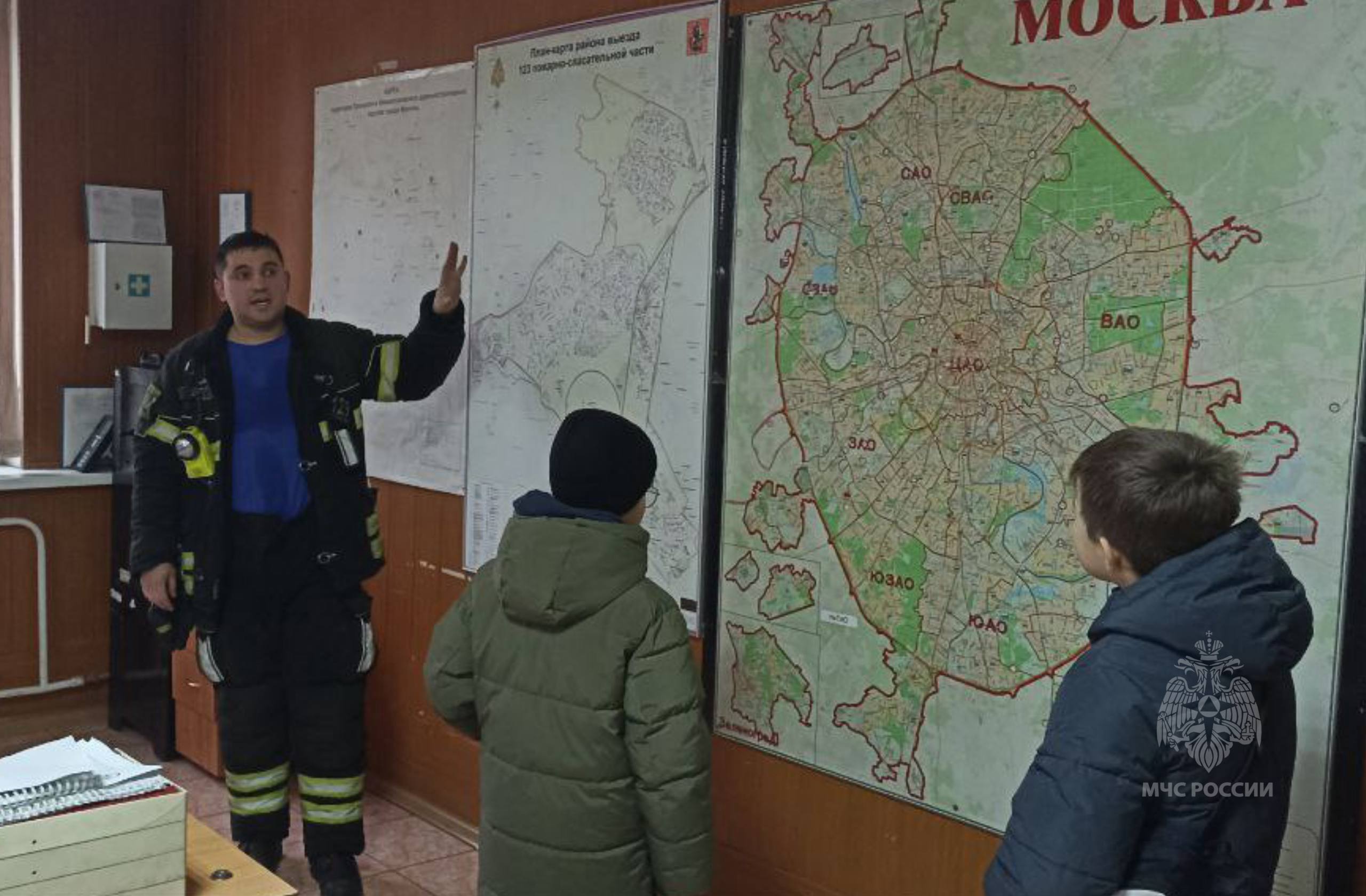Экскурсию по ПСЧ 123 Управления по ЮЗАО ГУ МЧС России по г. Москве провел для ребят командир отделения Сергей Полулях.