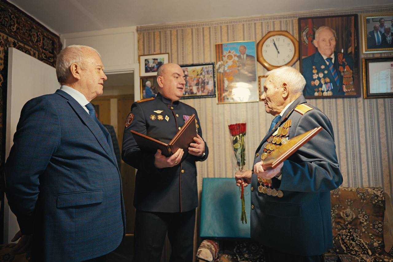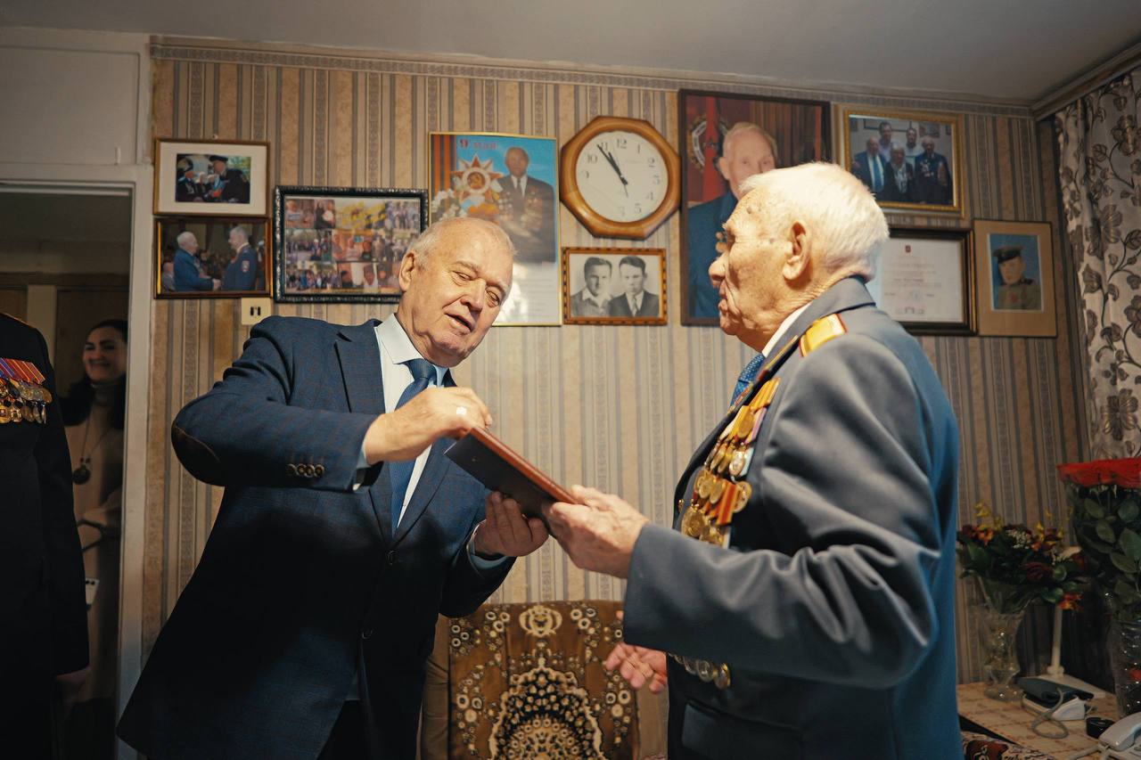 Помощник командующего Центральным округом Росгвардии по работе с ветеранами полковник в отставке Николай Григорьев и заместитель командира столичной дивизии по охране общественного порядка полковник Андрей Листов поздравили ветерана со 100-летием, выразив слова глубокой благодарности за многолетнюю службу и личный вклад в защиту Отечества.