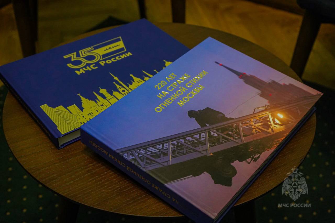 В торжественной обстановке начальник Главного управления МЧС России по г. Москве Вадим Уваркин передал Российской государственной библиотеке два ценных издания, посвящённых пожарной охране столицы и 35-летию МЧС России.