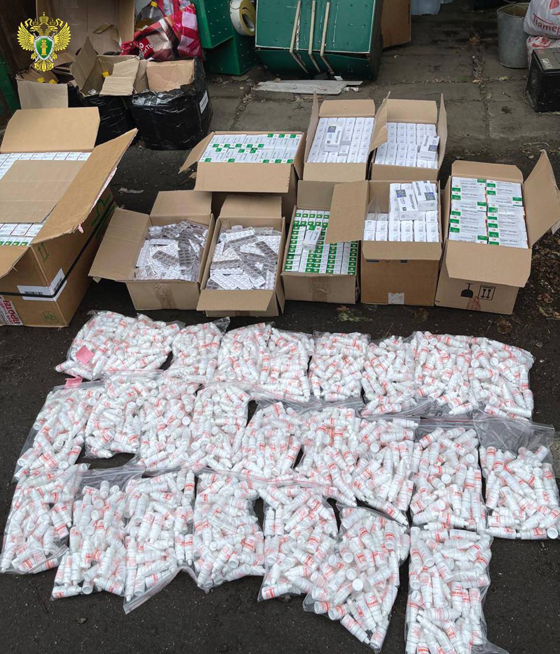 На фото – изъятые лекарственные препараты. Свыше 175 килограмм таких медикаментов участники преступного сообщества планировали продать без рецепта жителям Москвы и Подмосковья через подконтрольные аптечные пункты.