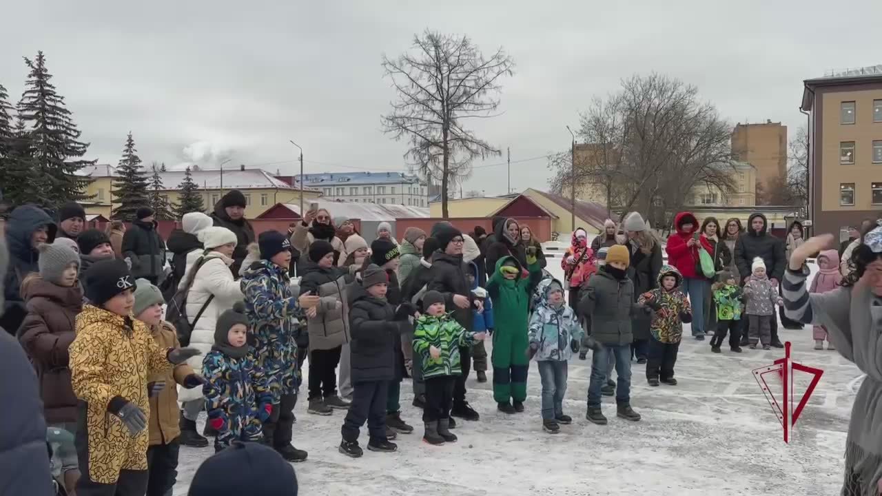 На улице для гостей была организована развлекательная программа с аниматорами, конкурсами и полевой кухней. Ребята водили хороводы вокруг новогодней ёлки вместе с Дедом Морозом, Снегурочкой и сказочными персонажами.