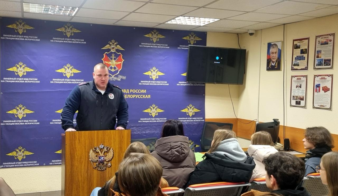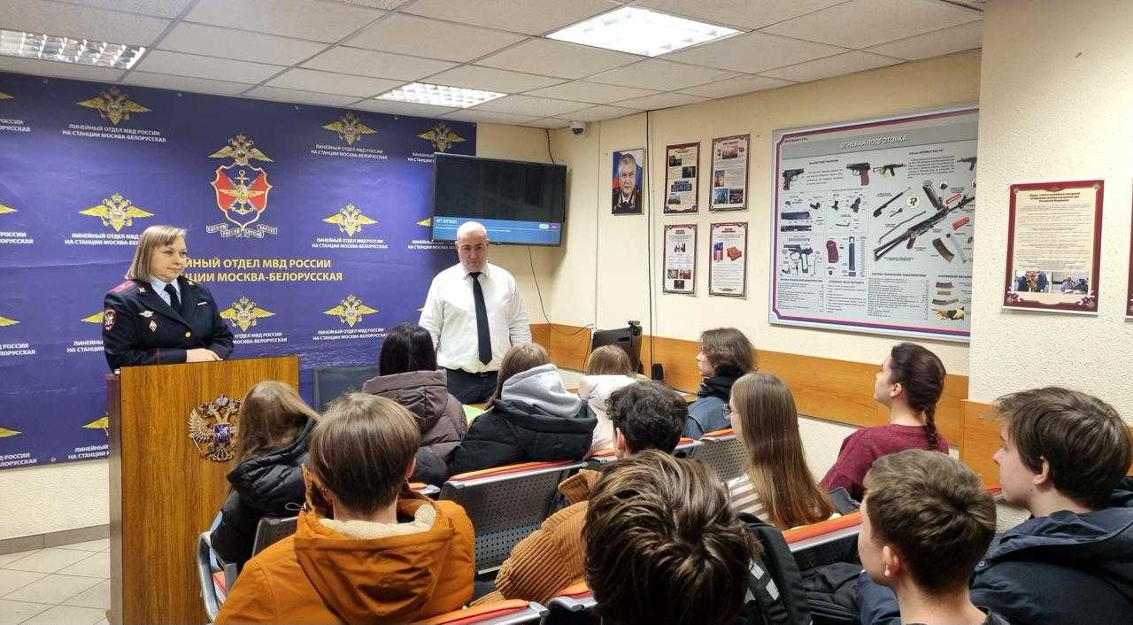 Мероприятие началось с приветственного слова врио начальника ЛО МВД России на станции Москва-Белорусская подполковника полиции Алексея Воронцова и агитационной беседы, которую для школьников провела заместитель начальника ЛО МВД России - начальник отделения по работе с личным составом, майор полиции Ирина Щеглова.