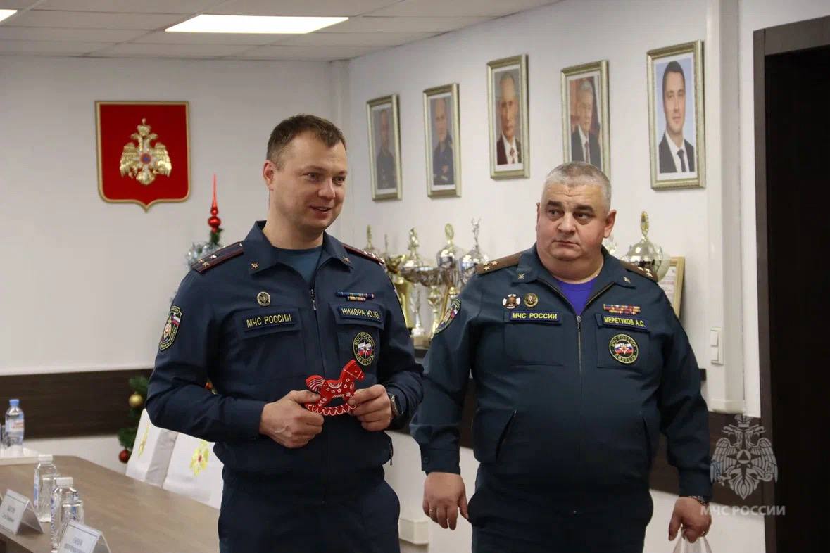 Учащиеся школы № 281 поздравили сотрудников Управления по СВАО ГУ МЧС России по г. Москве и огнеборцев 73 ПСЧ. Ребята подарили сотрудникам чрезвычайного ведомства подарки, которые они сделали своими руками.