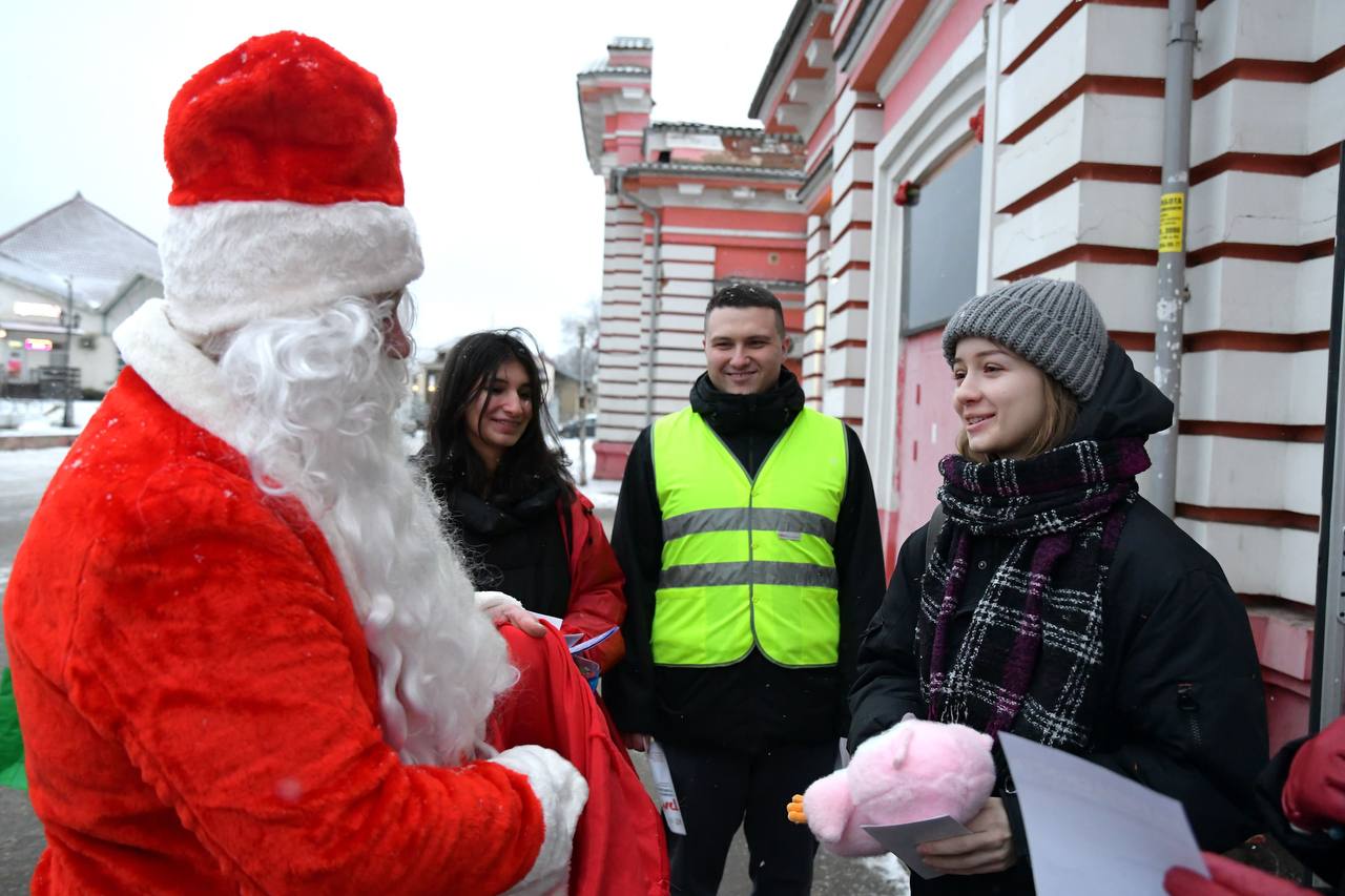 Создать праздничную атмосферу и привлечь внимание помог главный символ Нового года. Дед Мороз поздравлял жителей и гостей города, дарил сладкие угощения и подарки, что делало серьёзный разговор более тёплым и запоминающимся.