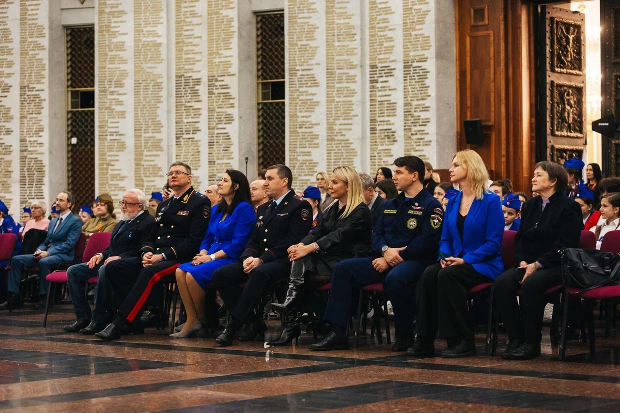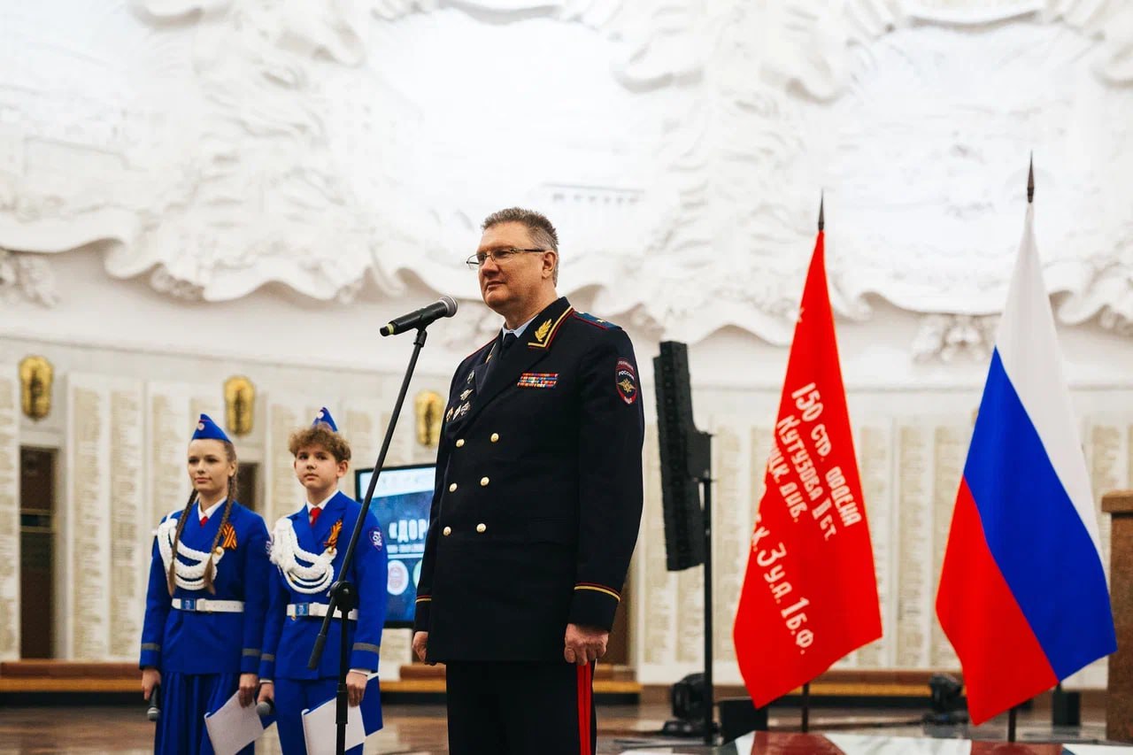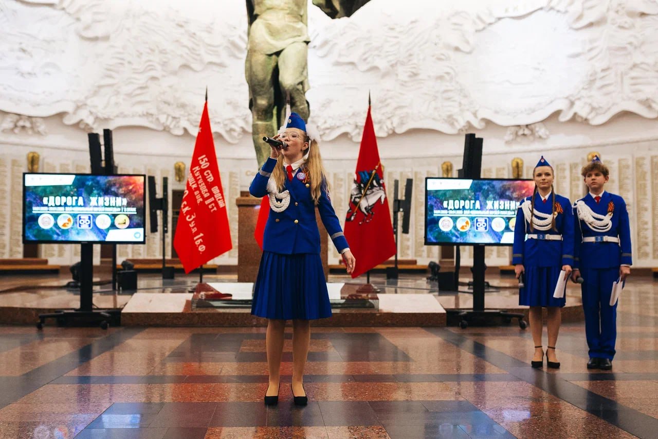 Заместитель руководителя российской Госавтоинспекции Олег Понарьин и юные инспекторы движения открыли выставку «Дорога жизни» в Музее Победы на Поклонной горе в Москве