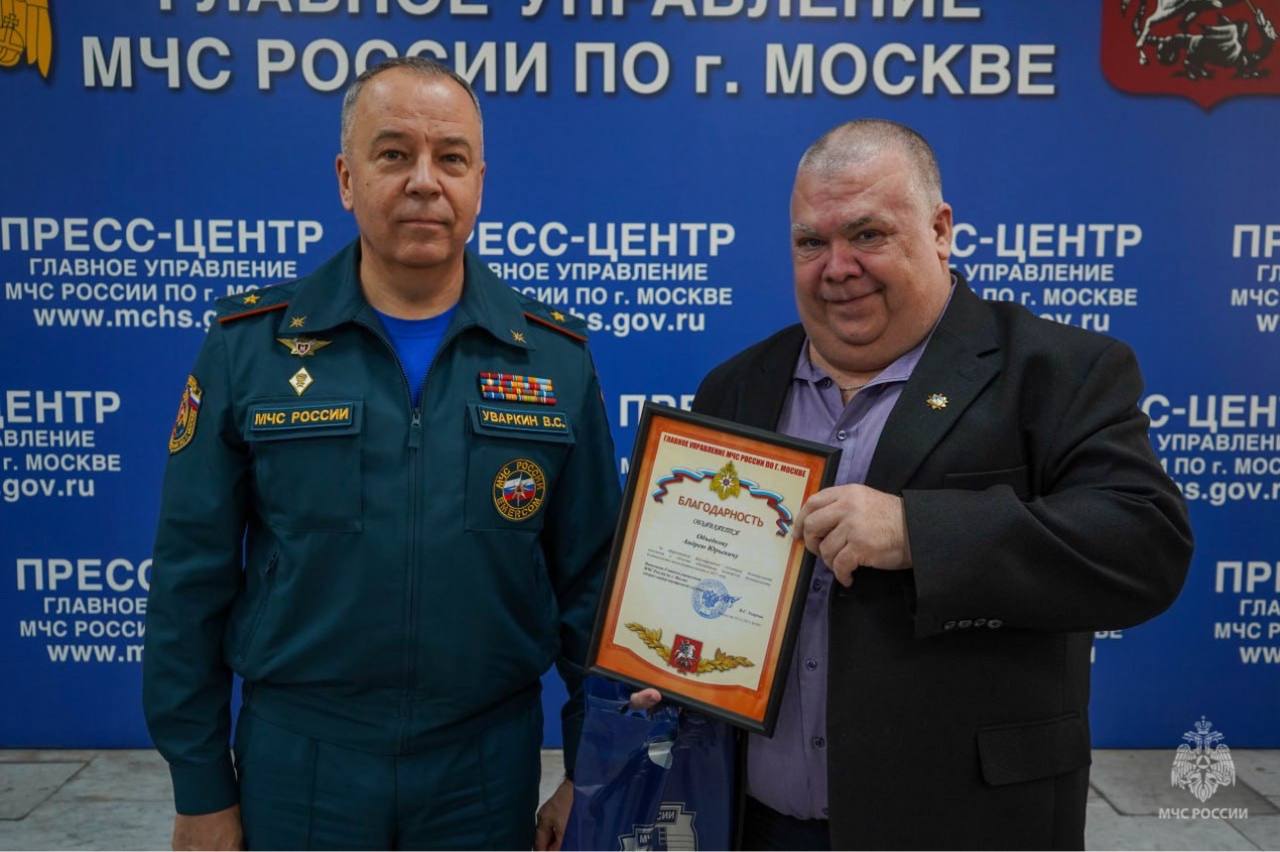 Начальник Главного управления МЧС России по г. Москве Вадим Уваркин вручил благодарности журналистам ко Дню российской печати