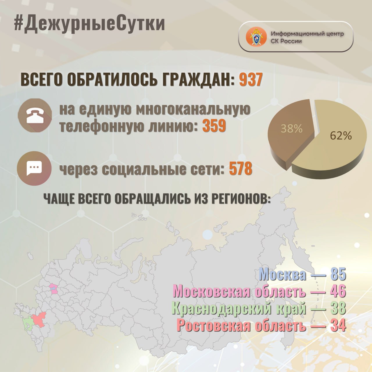 В Информационный центр СК России за прошедшие сутки всего обратилось граждан: 9 3 7