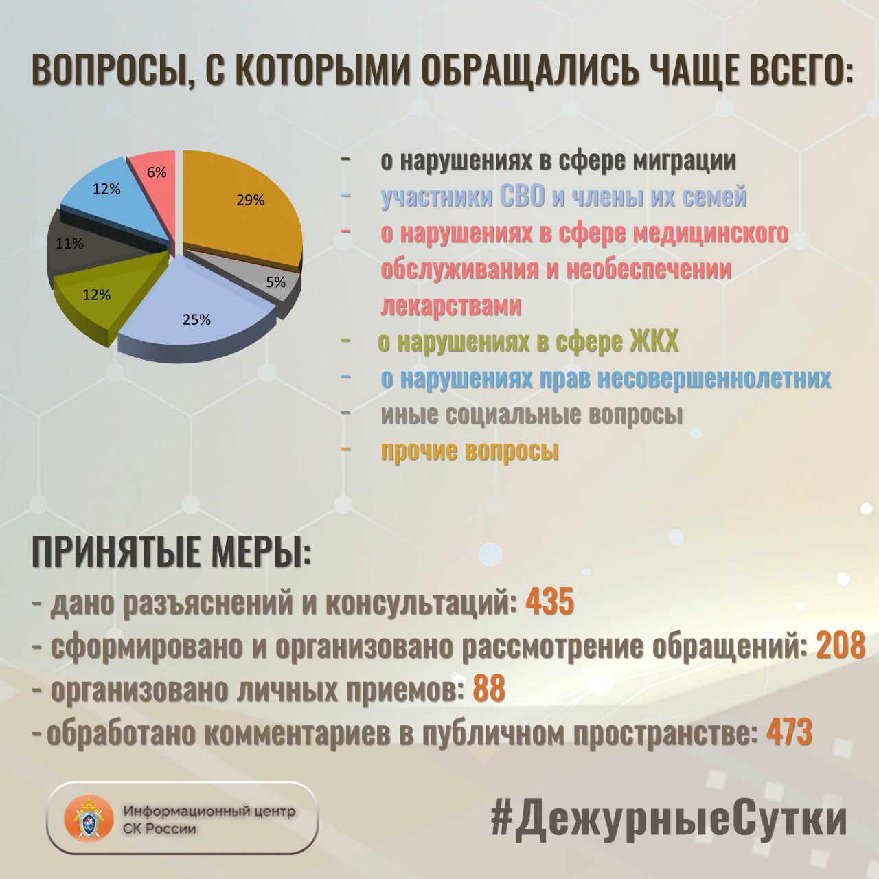 В Информационный центр СК России за прошедшие сутки всего обратилось граждан: 6 4 3
