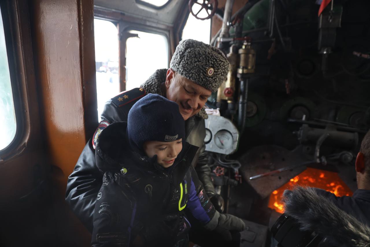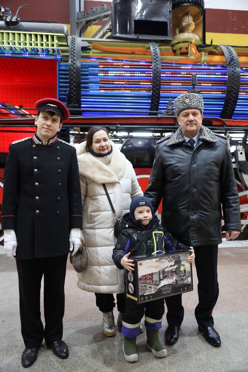 На служебном автомобиле полиции Вова и его мама приехали на историческую площадку в «Паровозное депо «Подмосковная»», где для гостей организовали экскурсию в «прошлое».Вова побывал в кабине действующего паровоза и услышал настоящий гудок.