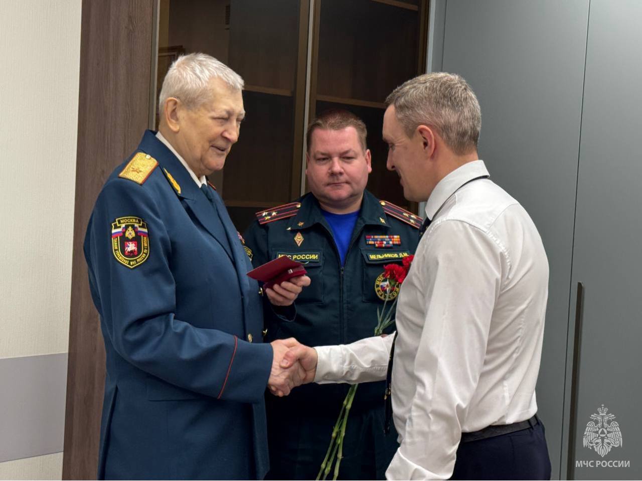 Почетный председатель совета ветеранов ГУ МЧС России по г. Москве Леонид Коротчик и временно исполняющий обязанности заместителя начальника