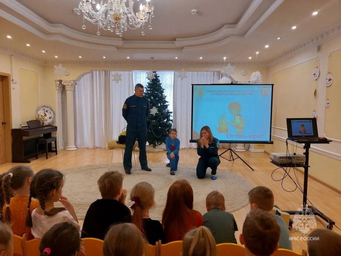 В ходе мероприятия специалисты чрезвычайного ведомства рассказали малышам о том, как действовать в случае возникновения пожара, напомнили номера вызова экстренных служб и разъяснили, какие правила безопасности нужно соблюдать, чтобы не допустить возгорания.