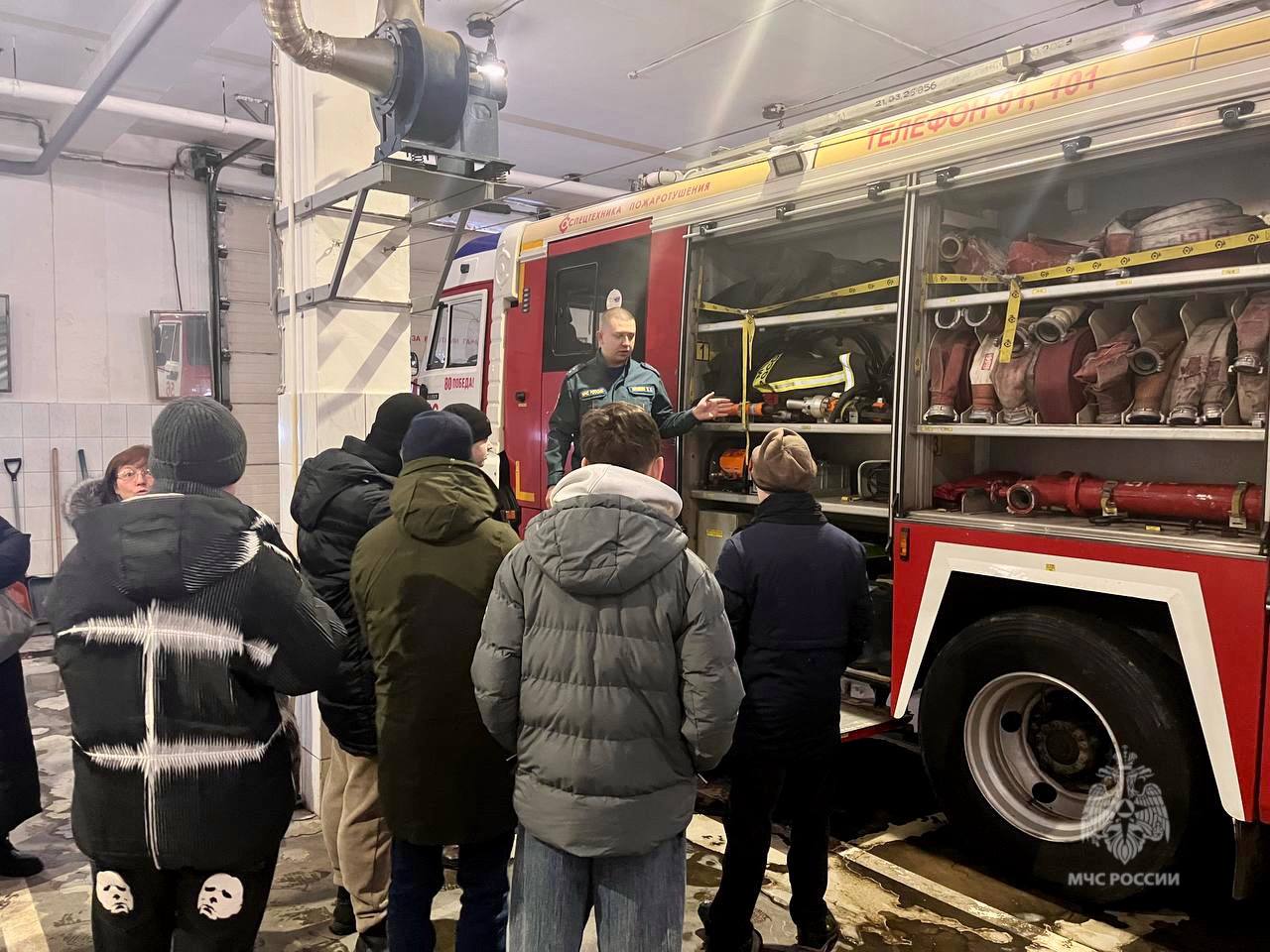 Ребята смогли увидеть пожарно-спасательную технику и оборудование, а также примерили боевую одежду огнеборцев.