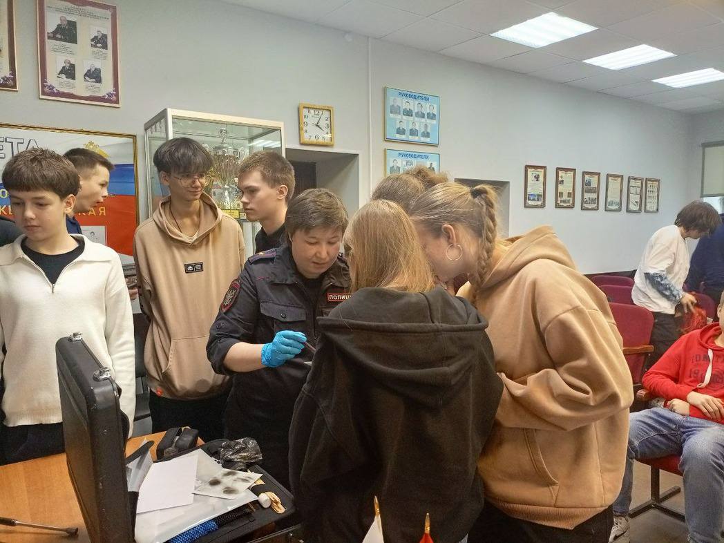 Начальник экспертно-криминалистического отделения майор полиции Галина Тянгинская провела с ребятами практическое занятие по выявлению, фиксации и изъятию следов пальцев рук с различных поверхностей. Рассказала об особенностях проведения различных видов экспертиз.