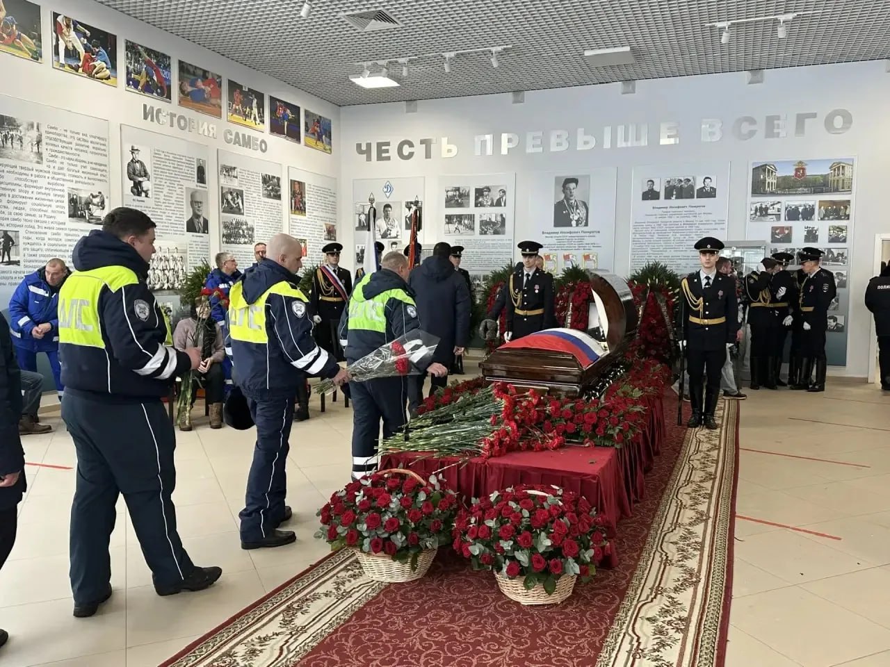 В церемонии принимают участие родные и близкие нашего товарища, руководство, личный состав и ветераны Главного управления МВД России по г. Москве, коллеги госавтоинспектора и представители органов исполнительной власти. Несколько тысяч человек пришли простится со стражем правопорядка ценой своей жизни остановившего преступника.
