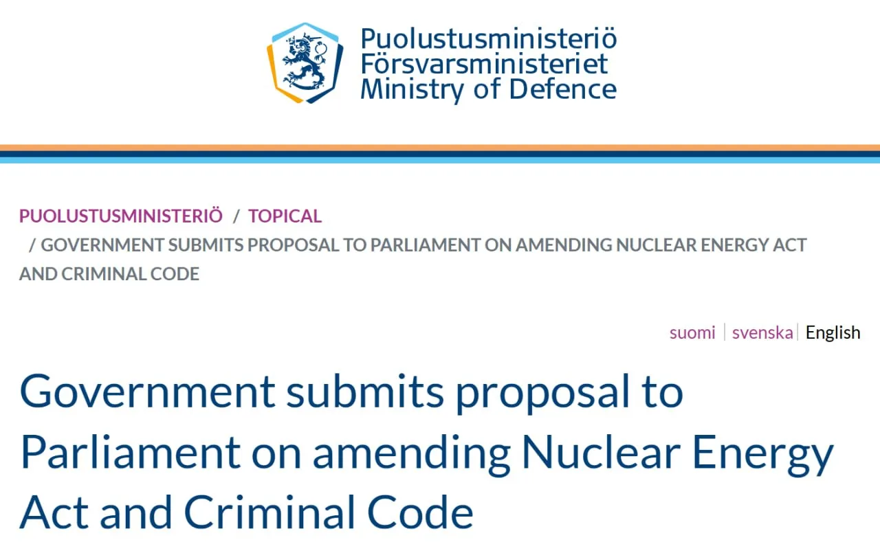 Правительство Финляндии выступило с инициативой отменить правовые ограничения на ввоз, хранение и транзит ядерного оружия через территорию страны.