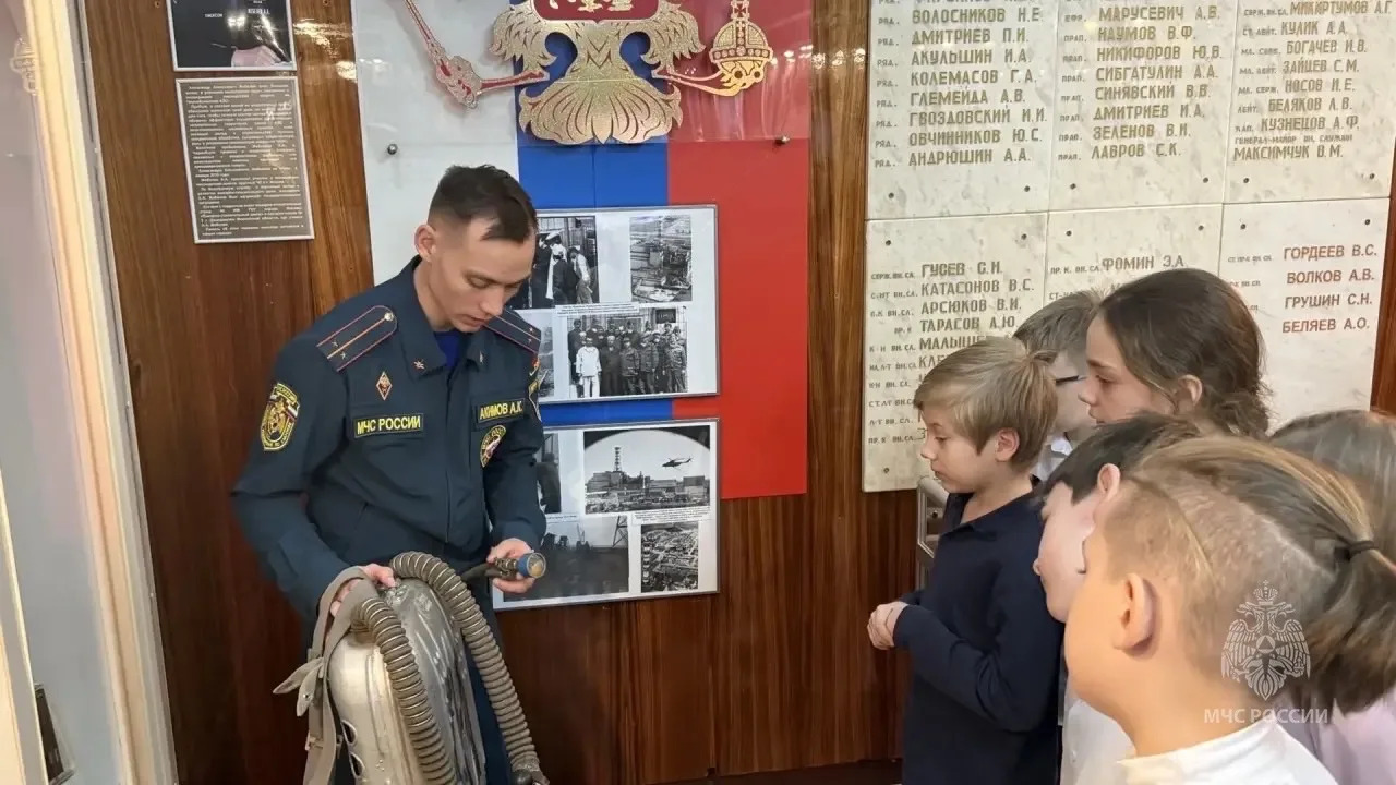 Особое внимание школьников привлекла тематическая экспозиция, где представлены комплект боевой одежды пожарного 1980-х годов и карманный дозиметр ДКП-50А, использовавшийся для измерения доз гамма-излучения. Экспонаты помогли ребятам лучше понять, в каких сложных условиях работали специалисты, участвовавшие в ликвидации последствий радиационных катастроф.