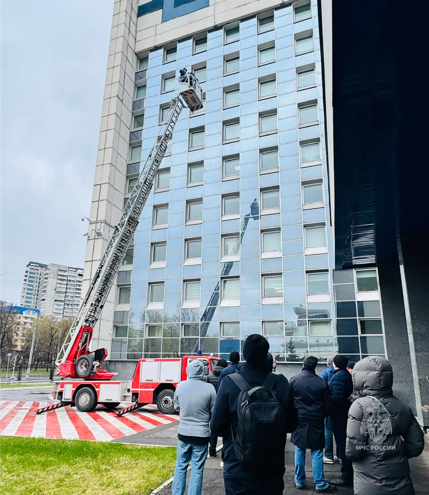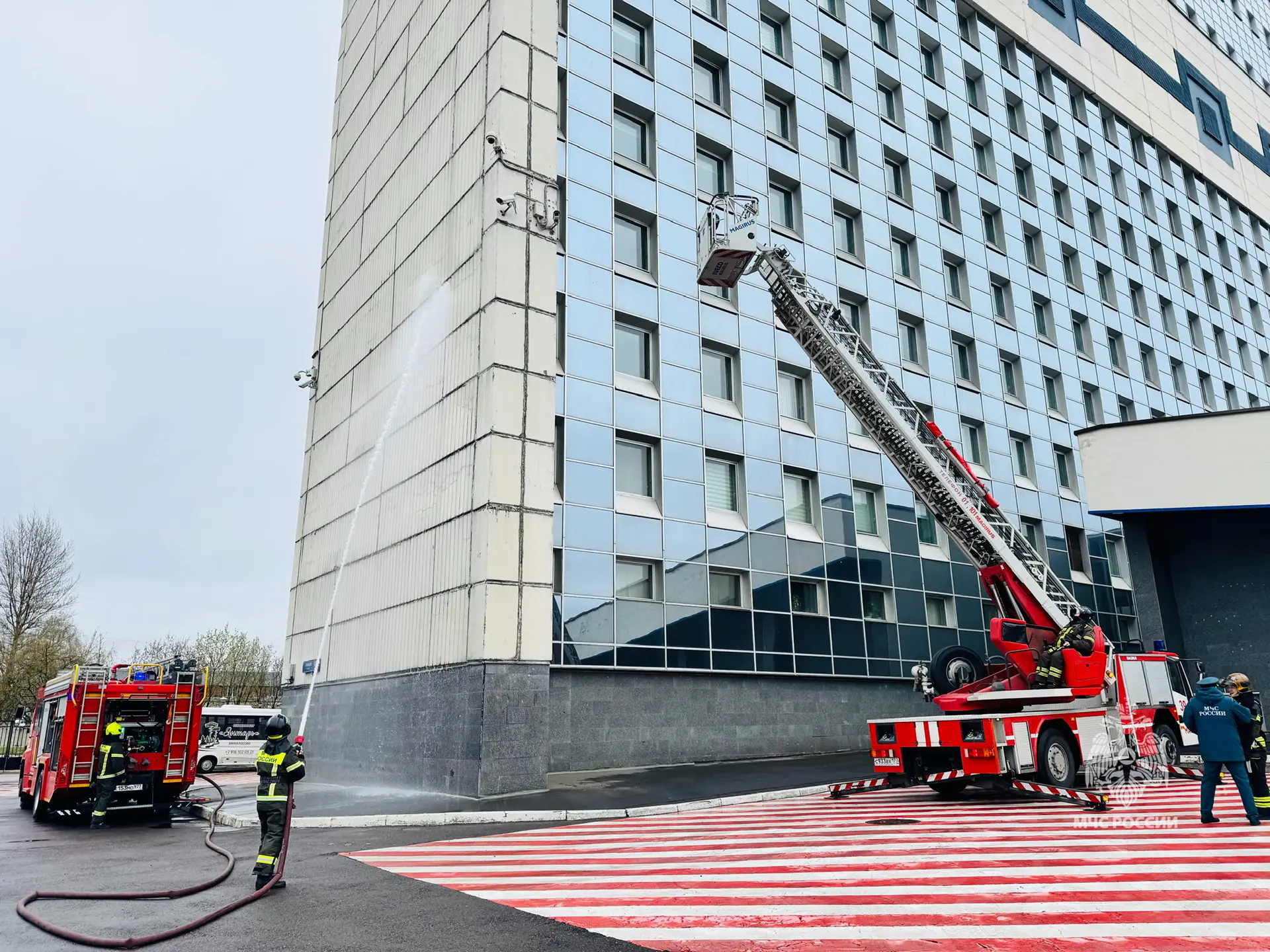 Также было проведено показательное пожарно-тактическое занятие, в ходе которого были отработаны вопросы взаимодействия пожарно-спасательных подразделений столичного управления МЧС России с дежурными службами объекта, приемы и способы спасения условных пострадавших и оперативное развертывание сил и средств на месте условного возгорания.