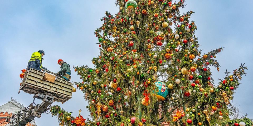 Центром праздничной композиции на Тверской площади станет одна из самых оригинальных елей столицы. Ее составили из миниатюрных копий знаковых московских зданий — Большого театра, здания Мэрии Москвы, сталинских высоток...