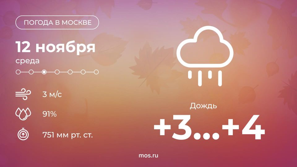 Температура воздуха днем поднимется до +4 °С. Не забудьте взять с собой зонтик!Подписывайтесь на официальный канал Москвы в MAX.