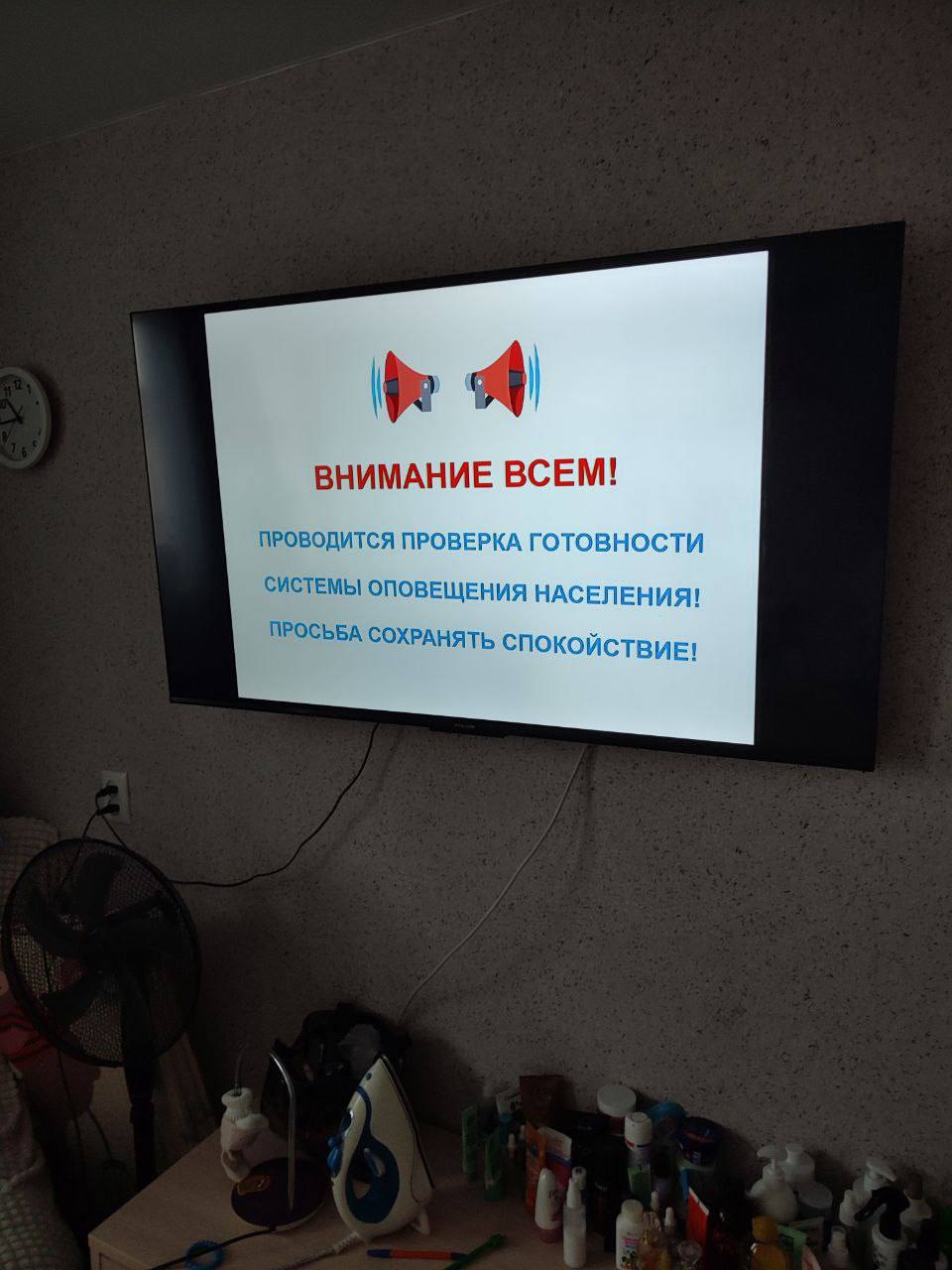 Также передают сообщение по радио и ТВ. Жителей просят не пугаться и сохранять спокойствие.