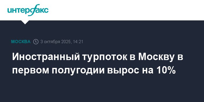 500 тысяч иностранных туристов (+10% год к году) посетило Москву за первые 6 месяцев 2025 года.