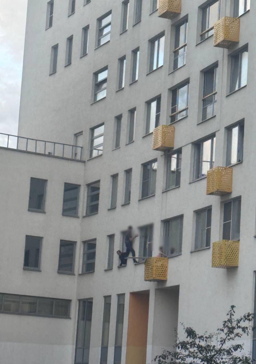 Маленький ребёнок забрался на подоконник и вытолкнул москитную сетку. К счастью, приземлился он очень удачно.
