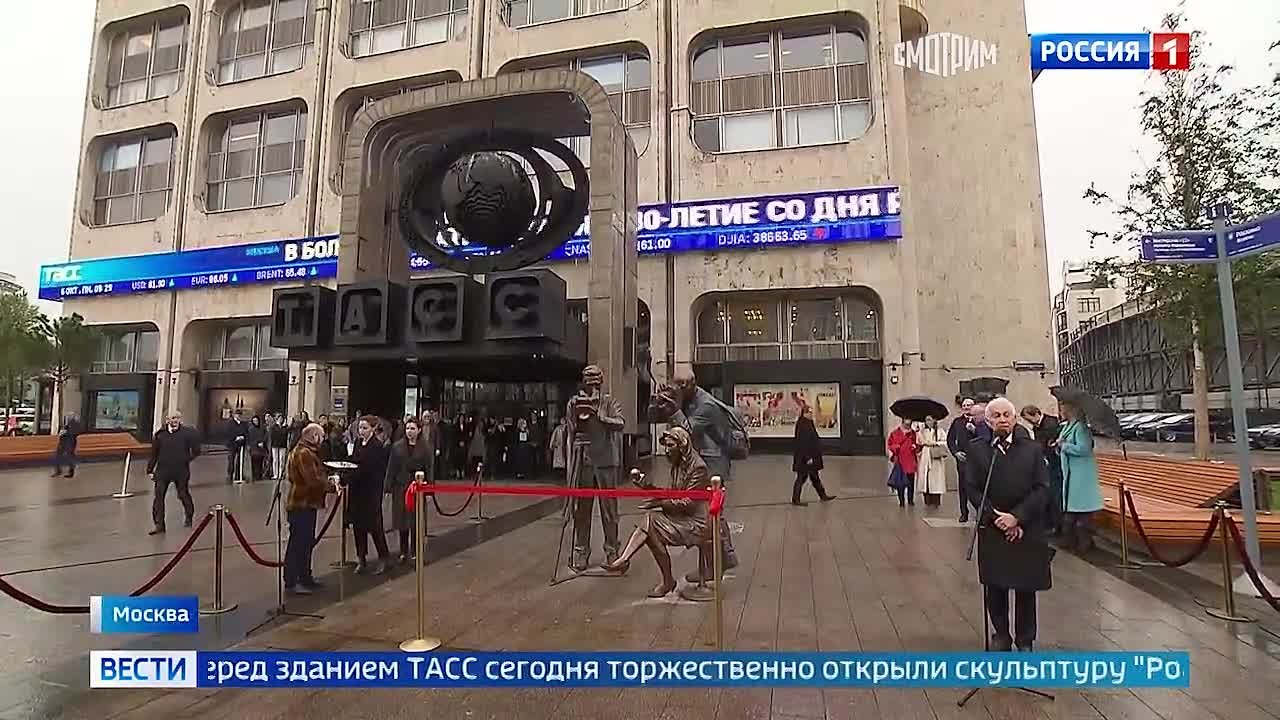Скульптуру "Российские журналисты" торжественно открыли в сквере ТАСС в Москве. Этот памятник стал первым в России, который посвящен сотрудникам отечественных СМИ.