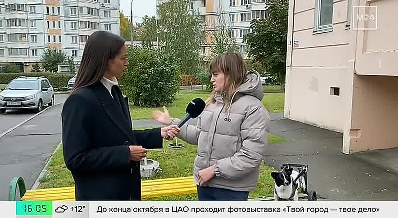 Собака с парализованными лапками, которую избил сосед, сейчас дома. И даже успела попасть в эфир «Москва 24».