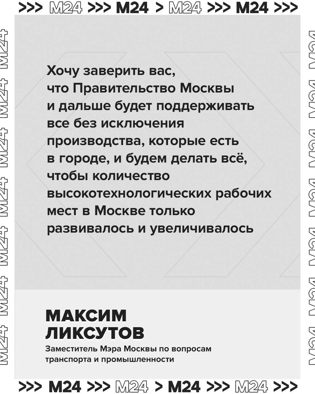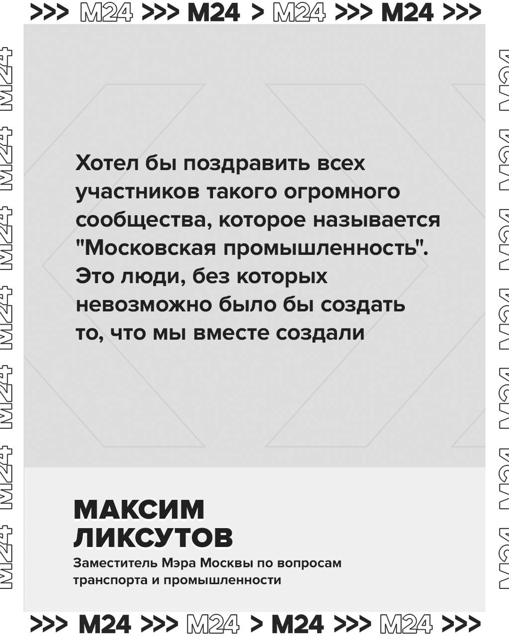 И за это Ликсутов поблагодарил всех работников московской промышленности и поздравил их с профессиональным праздником. Главное из интервью заммэра — в наших карточках.