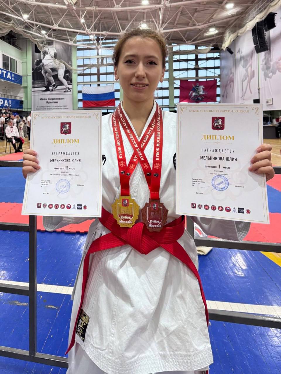 Сотрудница Управления имущества со специальными режимами обращения центрального аппарата Росимущества Юлия Мельникова приняла участие в открытом Кубке Москвы по каратэ Шотокан и заняла два призовых места.