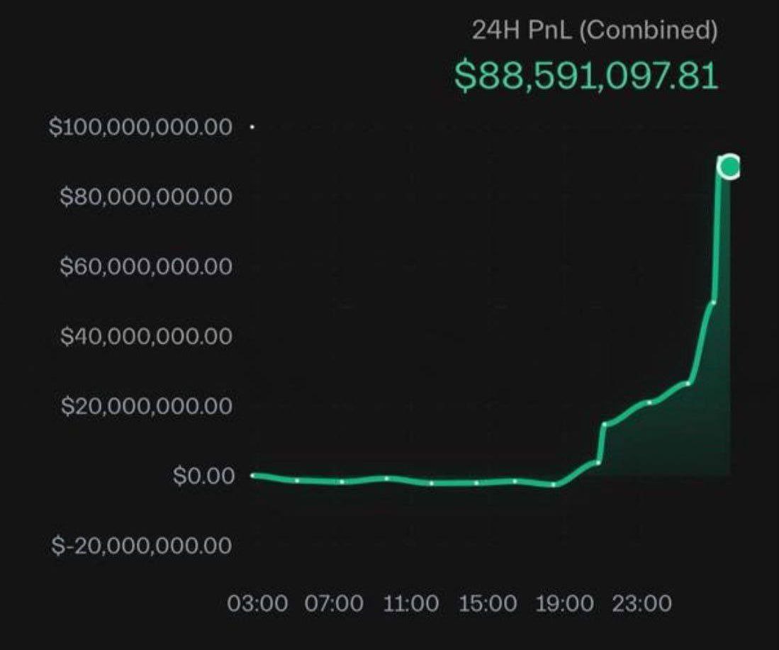 Кто-то очень удачливый (или очень осведомленный) открыл ставку на падение биткоина ровно за полчаса до того, как Дональд Трамп объявил о новых пошлинах против Китая. Новость моментально обрушила рынок. Итог: $88 000 000 прибыли за 30 минут.