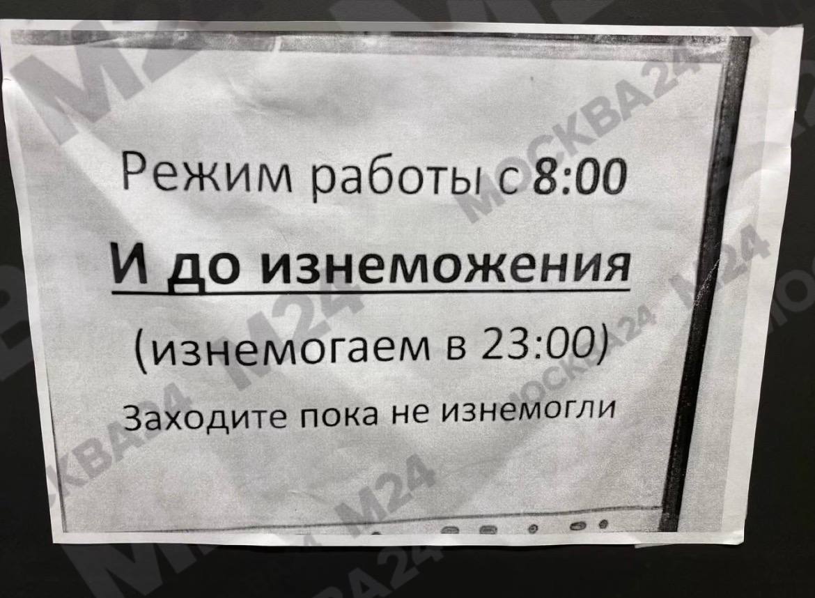 Сотрудники супермаркета на Ясеневой работают до изнеможения. Наступает этот момент, судя по креативному объявлению, в 23:00.