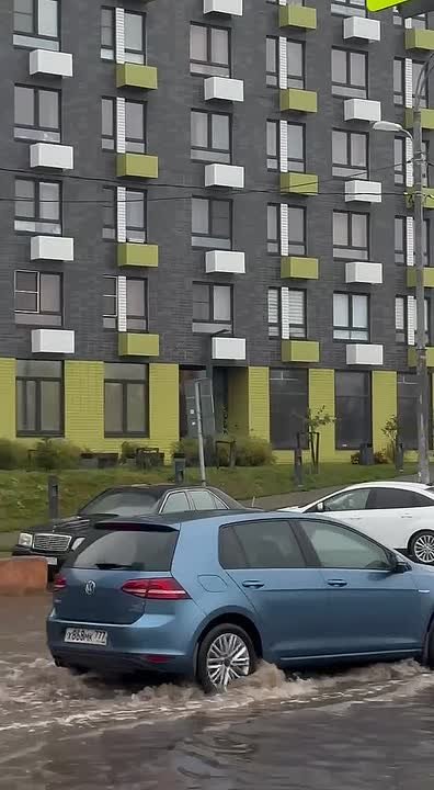 «Пешеходный переход или пешеходный переплыв» — цитата дня из подмосковного Дрожжино, где дождь затопил дороги.