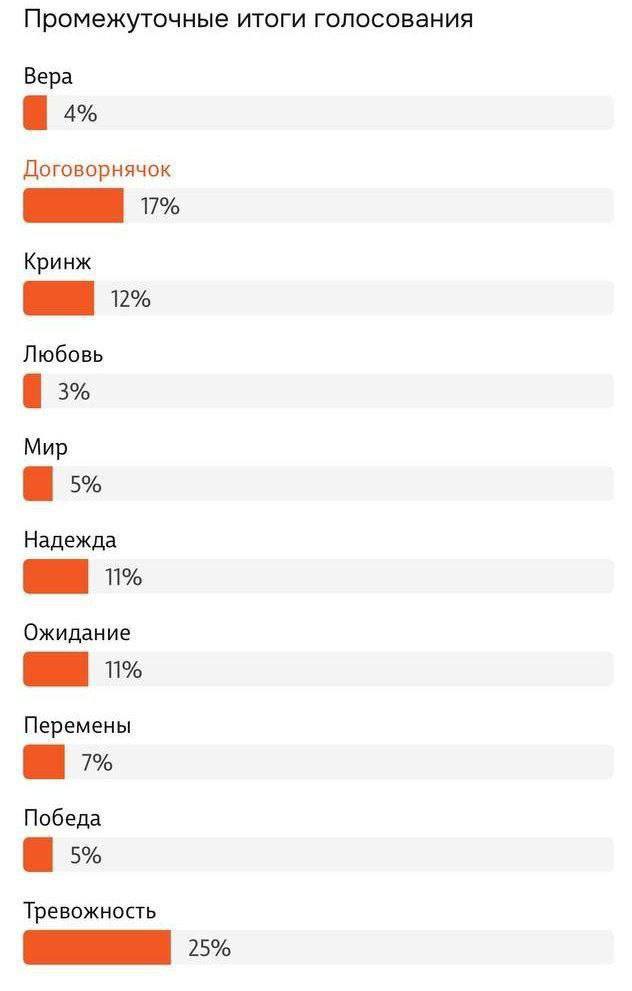 Меньше всего голосов у слов «любовь», «мир», «вера».