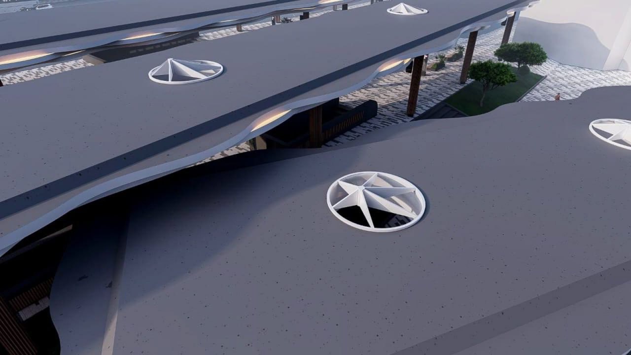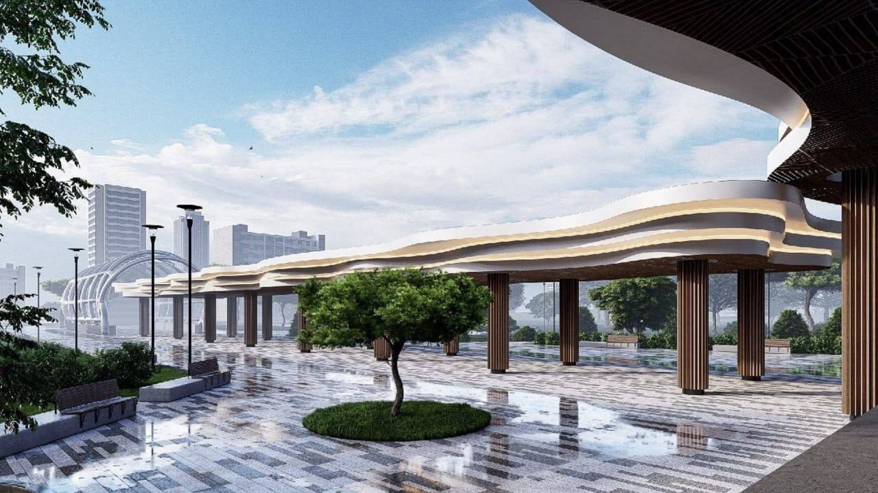 Сами навесы выполнены из высокопрочной стали, облицованы алюминием. На крышах — световые зенитные фонари (проемы по типу мансардных окон). Под навесами размесят инфракрасный обогрев, лавочки, табло с расписанием, а также теплые павильоны.