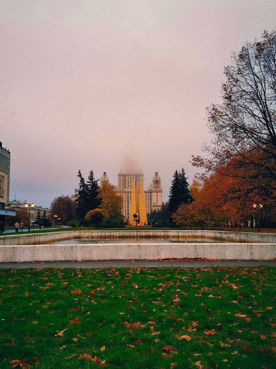 АТМОСФЕРА: Москва погрузилась в мистический пейзаж — МГУ почти исчезло в тумане.