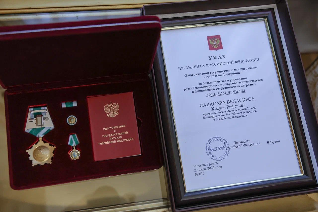21 октября Министр иностранных дел Российской Федерации С.В.Лавров вручил Орден Дружбы Чрезвычайному и Полномочному Послу Боливарианской Республики Венесуэла в Москве Х.Р.Саласару.