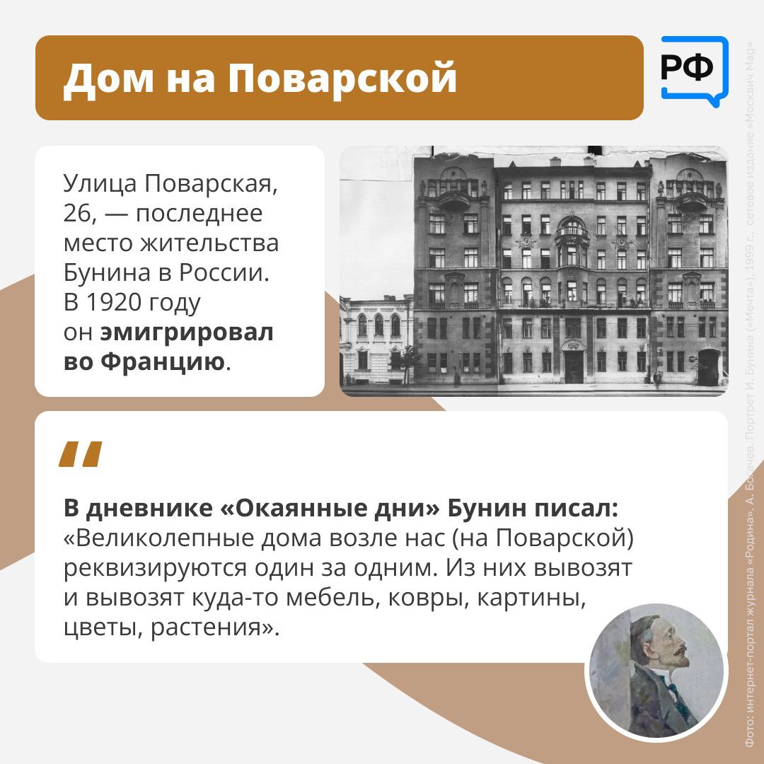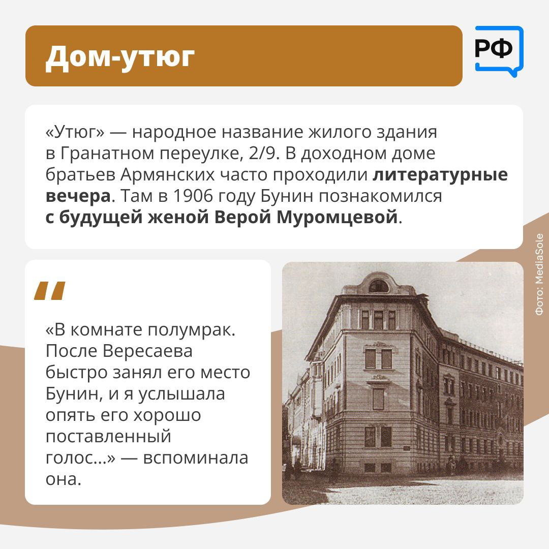 Иван Алексеевич много ездил по свету, но ключевые события его жизни связаны с Москвой. В день рождения писателя приглашаем «прогуляться» по бунинским местам в столице. Открывайте карточки!